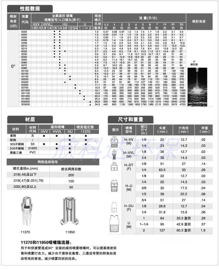 一、扇形P型喷嘴优点和特性1.窄角的高冲击力扇形喷雾形状,边缘清晰,分布均匀。2.液滴中等大小。3.稳定的一体式导流面设计4.大而畅通的液流通道程度地减少了阻塞现象。5.偏转角的设计提高其冲击力度。喷嘴系C6.18100E-B喷头的整体式设计,无需工具,只要转动1/4圈就可以方便快速安装并自动校准,方便。7.可定做PVDF、PP、PTFE、黄铜及其他特殊材质